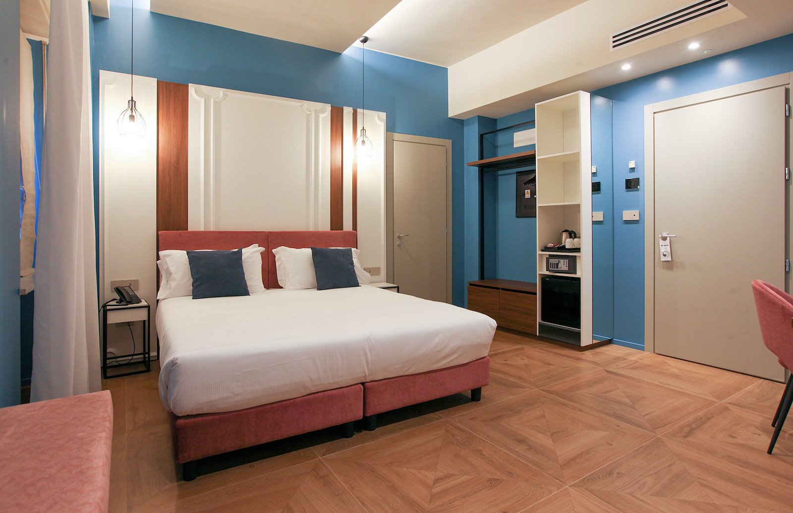 With its refined and essential design, the Deluxe Room offers the perfect environment for relaxation after a day of shopping or a busy work schedule. Located in a neighborhood with rich history and charm, it is especially suited for couples looking for an unforgettable experience in Milan. The room features a private sauna for two, ensuring an exclusive and enjoyable stay.