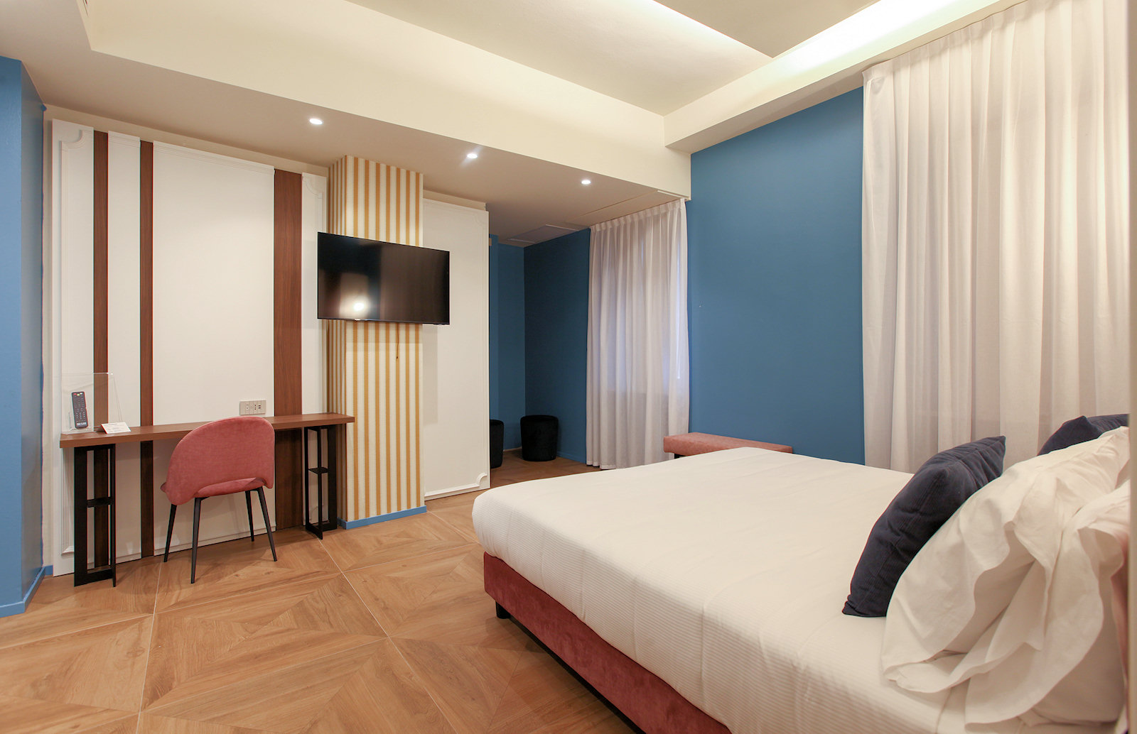 With its refined and essential design, the Deluxe Room offers the perfect environment for relaxation after a day of shopping or a busy work schedule. Located in a neighborhood with rich history and charm, it is especially suited for couples looking for an unforgettable experience in Milan. The room features a private sauna for two, ensuring an exclusive and enjoyable stay.